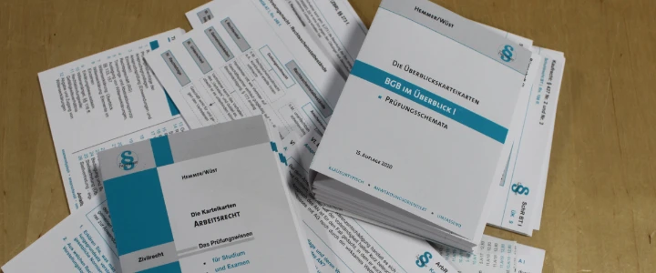 Aber aufgepasst! Karteikarten stellen nur einen Teil der Lernmaterialien für Jurastudenten dar, um sich auf die Prüfungen vorzubereiten. Weitere Lernmaterialien sind zum Beispiel die hemmer Skripte und Fälle.
