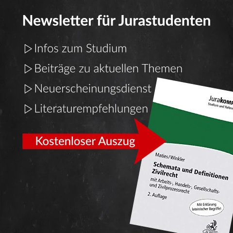 Registriere dich jetzt für unseren studentischen Newsletter und erhalte einen kostenlosen 55-seitigen Auszug aus dem Werk „Schemata und Definitionen Zivilrecht“ von Maties/Winkler zum Download. Inklusive relevanter und unbedingt zu beherrschender Definitionen. Der Auszug unterstützt dich somit ideal bei deiner nächsten Prüfungsvorbereitung!