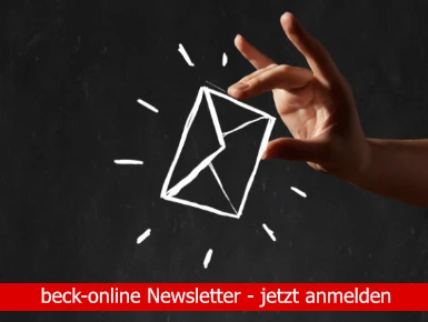 Juristisches Know-how ist unsere Spezialität. Wenn Sie möchten, dann informieren wir Sie regelmäßig zu allen wichtigen Neuigkeiten rund um beck-online. Melden Sie sich für unseren neuen, monatlich erscheinenden Newsletter an und profitieren Sie von spannenden Inhalten, Infos zu den neuesten Werken in beck-online, aktuellen Fachnews, Zeitschriften, Veranstaltungshinweisen, Webinaren, aktuellen Angeboten und vieles mehr. Lassen Sie sich überraschen!