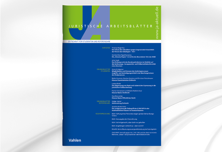 Aufsatzteil zur Vertiefung des prüfungsrelevanten Wissens für das Erste und Zweite Staatsexamen, Übungsblättern Basic und Übungsblättern für Referendare, Rechtsprechungsübersicht mit ausbildungs- und prüfungsrelevanter aktueller Rechtsprechung aus allen Fachbereichen, von Hochschullehrern aufbereitet.