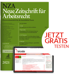 Testen Sie jetzt kostenlos die NZA für drei Monate inkl. Online-Modul NZADirekt und Sie erhalten die Sonderausgabe »Arbeitsunfähigkeit« als Geschenk. Die Ausgabe enthält spannende Beiträge zum Thema Arbeitsunfähigkeit.