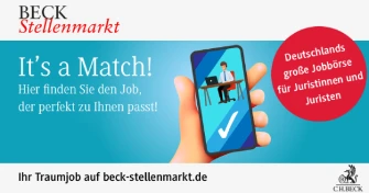BECK Stellenmarkt, Deutschlands große Jobbörse für Juristen und Fachangestellte, stellt interessante Stellenangebote, attraktive Arbeitgeber oder neue Mitarbeiter vor. Angehende Rechtsanwalts- und Notarfachangestellte finden hier wichtige Informationen rund um Ausbildung und Prüfung sowie hilfreiche Buchempfehlungen. Für Ihre Fortbildung sorgt Beck Seminare mit einer großen Auswahl an Seminaren oder Live-Webinaren.