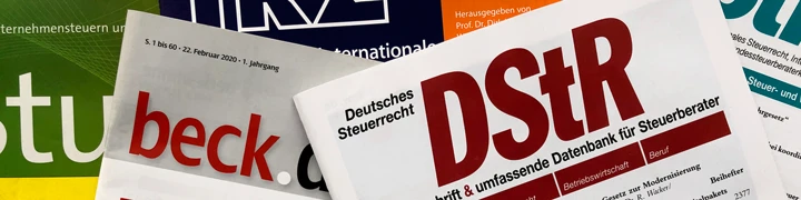 Wichtige Fachinformationen und einen Überblick über die aktuelle Rechtsprechung zum Steuerrecht finden Sie in unseren Zeitschriften aus dem Bereich Steuern. Wir bieten Ihnen sowohl Print- als auch Online-Ausgaben. Das bedeutet, Sie können frei wählen, ob Sie die Zeitschrift pünktlich auf Ihrem Schreibtisch haben möchten oder ganz flexibel unterwegs oder zu Hause online lesen. So sind Sie immer auf dem neuesten Stand und in der Mandantenberatung Ihrer Steuerkanzlei überzeugen.